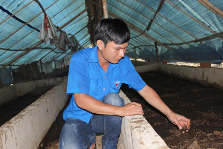 Chỉ tay vào một ô nuôi, Tâm chia sẻ: “Nuôi trùn rất thú vị, phân bò đưa vào đây chỉ trong vòng từ 10-15 ngày con trùn đã biến phân bò thành phân vi sinh, bón rất tốt cho cây trồng. Trùn quế là loại khá dễ tính. Nuôi không khó chút nào, chỉ cần hiểu được tập tính, chăm sóc đúng kỹ thuật thì nó sẽ mang lại nguồn thu nhập cao”.